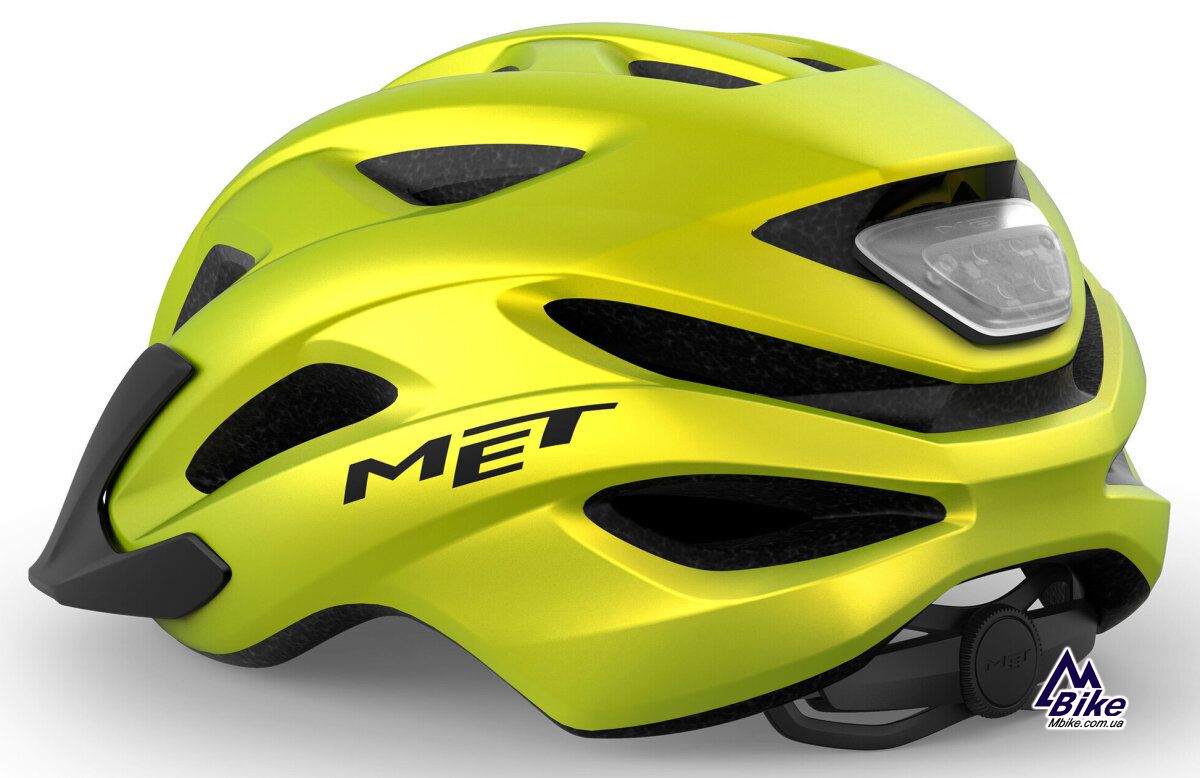 - LED мигалка з 4 режимами роботи , вбудована в регулювальний ролик, і світловідбиваючий елемент на потилиці сприяють видимості велосипедиста у темряві. Мигалка живиться від батареї, якої вистачає на 60 годин роботи.